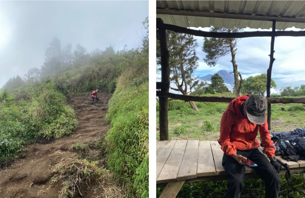 Foto kiri kaki gemeter sudah capek, foto kanan sampai di pos 1 istirahat sebentar karena lelah